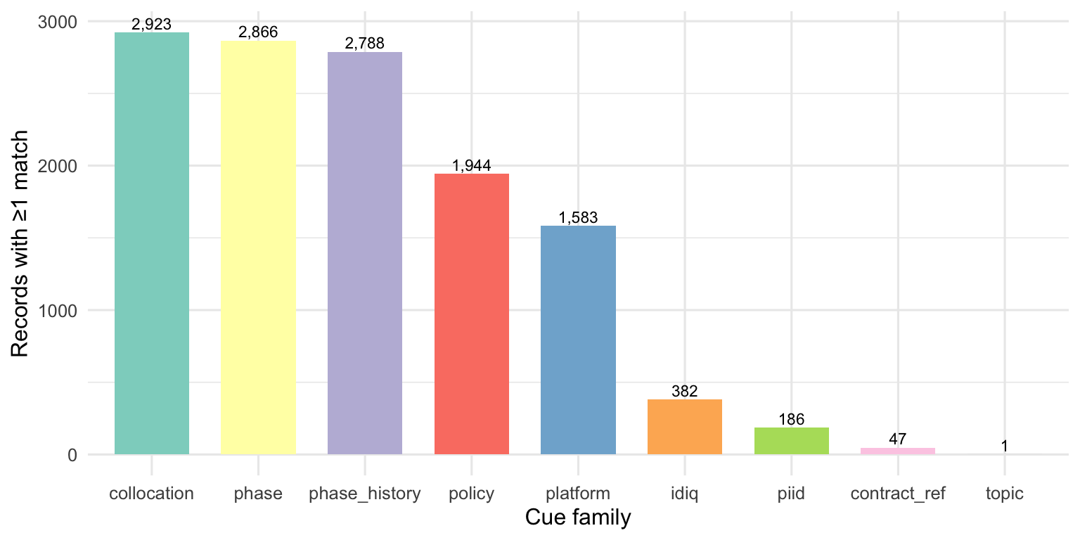 - Metadata fidelity: 90%+ of awards preserved the SR3 flag directly from FPDS metadata; the remainder rely on inferred lineage plus the new conflict logging to surface discrepancies.